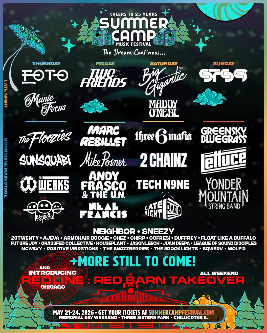 No matter where youโre coming from or what moves you – all paths lead to Summer Camp. Itโs a crossroads of sound, spirit, and soul where jam bands, electronic beats, bluegrass pickers, hip-hop stars, and rock legends all share the stage. Itโs a home for the seasoned camper, the first-timer, the wild dancer, the mindful hippie, and everyone in between. At SCamp, diversity isnโt just welcomed – itโs who we are. No matter the path, we all come together for one unforgettable experience.